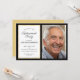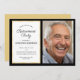 Esta invitación a la fiesta de retiro fotográfico ofrece un diseño elegante y profesional, con un borde negro que se acentúa con un borde dorado más delgado. La foto y el texto del personalizado le permiten añadir una imagen del honorario y los detalles de su fiesta de jubilación.
