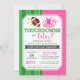 Tirar un toque divertido o el tema del tuto de género revelar fiestas usando estas lindas invitaciones. Este diseño incluye fútbol, tutu, rayas verdes y puntos de polka rosa. Personalice fácilmente con los detalles de su evento.