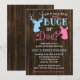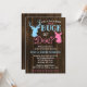 Invitaciones de fiesta de revelación de género con tema campestre. ¿Será un macho o hembra? Tus invitados amarán este divertido tema. Personaliza fácilmente con los detalles de tu evento.