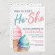 Él o ella, ¿cuál es la primicia, o 'sabor'? Un bonito género rosa y azul revela un tema fiesta perfecto para el verano. Así que, ya sea que la pareja esté teniendo un niño o un chica, ayúdenlos a celebrar su recién nacido con esta dulce diversión de helado. Con conos de helados rosas y azules, rociadores coloridos en el fondo, y una mezcla de tipografía moderna y de escritura para una vida divertida y divertida. El o ella Crema de Hielo Rosado y Azul Rasplante Lo que es la invitación de la fiesta temática de género Scoop Disponible como una invitación impresa, o como una invitación digital descargable que puedes enviar por correo electrónico o haber impreso localmente!
