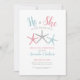 Sencilla Minimalista, moderna, rosa y azul. El tema de la playa de verano género revela la invitación a la fiesta. ¡Bienvenidos amigos y familiares de los padres a un verano o a una playa temática de género revelan fiesta para averiguar si la pareja está teniendo un niño o chica! Una bonita y moderna estampada acuática de estrellas, con una mezcla de cautivadores tonos rosa y azul o verde azulado que recuerdan a una casa de playa paradisíaca. Aprovecha la esencia del verano con este diseño de inspiración costera, adornado con brillantes estrellas del mar que desprenden un encanto náutico. Una versión simple y minimalista. ¡Yo también tengo otros! Disponible en forma de invitación impresa, o como una invitación digital descargable que puede enviar por correo electrónico o que ha impreso localmente.