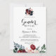 La invitación a la fiesta es perfecta para una revelación rústica de género de un bebé. El diseño se compone de peonías color agua rosa, rubor, marina, azul y borgoña, rosas con follaje verde cuidadosamente ensamblados en elegantes ramos.