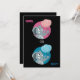 ¿Es un niño o un chica? Invita a tus amigos y familia con estas invitaciones personalizadas para revelar fiesta con ilustracion de pequeños elefantes lindos sosteniendo globos de aire rosa y azul, sobre fondo negro. Diseño de Maxi Harmony