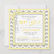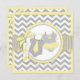 Un dulce género revela la carta de invitación a la fiesta con una moda gris y blanco chevron impresa y un adorable puente polka punto con una corbata amarilla y un dulce tutu.