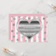 Invitación de Fiesta de San Valentín Corazón de Plata Rayas Rosas y Blancas. Personalice para cualquier evento.
