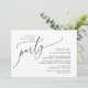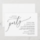 Anuncia y comparte tu felicidad para siempre con estilo con nuestro diseño de tema moderno en negro y blanco (Fiesta Felices para siempre) tarjeta de invitación para cena de boda, almuerzo, desayuno o celebración de fuga. Es ideal para parejas que han decidido celebrar su mejor día. Con su diseño sofisticado y juguetón, esta invitación seguramente establecerá el tono para un evento inolvidable. La tarjeta de invitación presenta un diseño de tema de letra moderno y minimalista, agregando un toque de elegancia atemporal a tu celebración. Diseñado por TeeshaDerrick