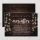 Hermosa fiesta de Siempre Felices, tarjeta de anuncio de boda / invitación de Elopement, en diseño de madera rústica de granja, Luces de Cadena. Esto es perfecto para la recepción de su boda y la fiesta de celebración después de la boda. Agregue sus detalles en letra / letra coincidente.#TeeshaDerrick