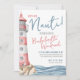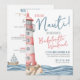 ¡Vamos a ser traviesas!! Un divertido y adorable tema para despedida de soltera con estilo náutico o de playa para un fin de semana de chicas. Ideal para una despedida de soltera en algún destino como la Costa Este (piensa en el Cabo, Hamptons, Martha's Vineyard, etc.) o en cualquier lugar del mundo donde quieras crear un ambiente náutico. Así que agarra tus gorras de capitán, reúne tus atuendos de navegación y diviértete con tus amigas en una última travesía antes del velo. Un lindo faro rojo y blanco en la parte delantera en medio de un océano azul (completo con una gaviota, por supuesto), y un barco de vela, detalles de agua y cuerda en la parte trasera. Una fuente tipográfica moderna manuscrita, esta impresión encantadora irradia encanto y sofisticación. El itinerario está en la parte trasera, pero siéntete libre de cambiar el texto por otros detalles importantes o simplemente una imagen linda en la parte trasera. Invitación de despedida