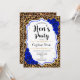 Diseño elegante en azul real y blanco con brillo dorado falso y estampado de leopardo. Cuenta con rosas azules zafiro y fuente de letra script de moda. Perfecto para una fiesta elegante. Envíame un mensaje si necesitas personalizar más.