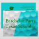 Puedes personalizar todo el texto en esta invitación de fiesta de soltero. Puedes cambiar el texto y el número en la parte delantera y usar esto para otros tipos de invitaciones de golf. El diseño presenta un golfista verde sosteniendo un palo y dos hoyuelos de pelota de golf de color.