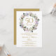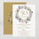 Con una delicada guirnalda floral de lavanda en acuarela, esta elegante invitación de sorpresa para el 50 aniversario de bodas se puede personalizar con la información de su aniversario dorado especial. El reverso presenta una guirnalda floral a juego que enmarca las fechas del aniversario en texto blanco elegante sobre fondo dorado. Diseñado por Thisisnotme©