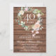 Con una delicada guirnalda floral de acuarela sobre un fondo de paneles de madera rústica, esta elegante invitación de aniversario de bodas de 40 años puede ser personalizada con su información especial de aniversario de rubí. El reverso presenta una guirnalda floral a juego que enmarca las fechas del aniversario en texto blanco elegante sobre un fondo rojo rubí. Diseñado por Thisisnotme©