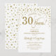 Invitación de Celebración de Sorpresa por el 30 Aniversario Dorado Blanco. Diseño elegante con falso foil dorado brillante. Características de letra script y diamantes de confeti. ¡Salud por 30 Años! Puede ser personalizado para mostrar cualquier año de matrimonio. Envíame un mensaje si necesitas más personalización.