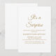 Prepare el escenario para una celebración sorpresa inolvidable con esta invitación elegante y atemporal. Con un diseño minimalista y tipografía de falso foil dorado romántica y caprichosa, es perfecta para cumpleaños, jubilaciones o cualquier evento sorpresa especial. Tenga en cuenta: este diseño utiliza gráficos de alta calidad para crear la apariencia de foil dorado y no contiene foil real.