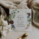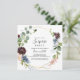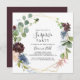 Esta invitación geométrica de sorpresas doradas de Borgoña es perfecta para un cumpleaños moderno, jubilación o cualquier fiesta sorpresa. El elegante diseño de boho cuenta con una marina acuarela, flores color rosa rubor y flores enológicas con detalles artísticos pintados con lápices.