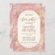 Diseño moderno y elegante con trazos de pincel dorados y rosa dorado divertidos y artísticos, y elementos brillantes con fuente elegante escrita a mano combinada con una fuente minimalista simple. Todo el texto es personalizable para cualquier evento y sería genial para fiestas de spa y maquillaje glam para preadolescentes, adolescentes o mujeres, pijamadas o fiestas de arte.