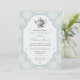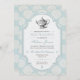 Celebre a una persona o pareja especial con una tradicional fiesta de té alto al estilo británico. El fondo de la invitación es una imagen de papel azul vintage con un patrón de rosetas blancas. El marco con un centro de papel blanco vintage presenta una ilustración vintage de una tetera ornamentada. Versátil para usar en una ducha de novia o pareja, ducha de bebé, fiesta de cumpleaños, desayuno de boda o un almuerzo especial. Disponible en colores alternativos con productos coincidentes.