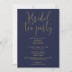 Invitación Fiesta de té de boda con guión de oro azul marino