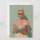 Disfrute de un momento de encanto atemporal con esta obra de arte de inspiración vintage. Una mujer encapuchada, vestida a mediados de siglo con una blusa rosa rosa, falda de gingham y collar de perlas, se alza contra una pared verde azulada pastel. Sus rubios clásicos y sus gafas de sol de ojos de gato hacen eco de la elegancia de los años 50. Sostiene una tetera verde menta y una mordaz taza de té, sugiriendo una merienda impregnada de glamour retro. Esta imagen capta la gracia y la sofisticación de una época pasada, perfecta para los amantes del estilo vintage, de la moda retro y de la decoración nostálgica. Ideal para impresiones, posters y accesorios de estilo de vida, esta pieza aporta un ambiente cálido y elegante a cualquier espacio o producto. Ya sea que diseñe artículos de cocina, decoración casera o papelería elegante, este diseño evoca la calma sofisticada y el encanto alegre.