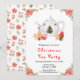 Esta elegante y festiva invitación a la fiesta de té navideña presenta una tetera y galletas de jengibre. En las esquinas hay hermosas flores de poinsettia rojas. El texto combina fuentes manuscritas y sans serif para una apariencia elegante y moderna. Esto es perfecto para un brunch de Navidad o una fiesta de té.