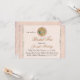 Invitación a la ducha de fiesta de Moda novia hecha en un fondo gráfico de color melocotón de aspecto antiguo. Los gráficos de un overlay blanco semitransparente tienen bordes blancos de estilo antiguo, a ambos lados, y un pequeño cuadro redondo bonito de un recipiente de té decora la parte superior de la carta. Personalice el texto negro y marrón dorado para su evento de fiesta de té nupcial.