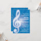 Haz del fiesta todo sobre la música con esta divertida invitación a la fiesta que sería genial para un músico o cualquiera para la música. Un gran trébol resplandeciente de trébol domina las vigas azules y violetas. La música de hojas se agrega como una textura sutil debajo. Al revés hay vigas y un área para agregar el nombre del honorable u otra información. Agregue cualquier información adicional en la parte inferior del reverso o elimine el bloque de texto para dejarlo en blanco. Apropiado y versátil para cualquier edad.