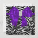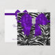 Plantilla de invitación elegante para fiestas y eventos con rayas de cebra en blanco y negro y lazo de diamante morado en el centro. Elija el estilo de fuente y el color de la fuente. Impreso sin joyas ni lazos reales.