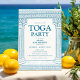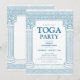Invitación Fiesta de Toga Griega en azul con columnas elegant