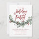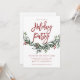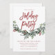 Invitación a la fiesta navideña del Día de la Fiesta de la Vecindad con Guión Rojo Moderno, con escritura audaz y vegetación acuarela con hojas y bayas. Hace una gran invitación personal o de negocios.