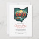 Invite a amigos y familiares a su celebración de vacaciones con esta invitación a la fiesta de Navidades temáticos de Ohio. El diseño del mapa del estado festivo presenta una escena de nevada frente al lago con botes y una brillante puesta de sol, que cautiva el encanto del estado de Buckeye en invierno. Personaliza con tus detalles de fiesta para difundir alegría de temporada con un toque de orgullo de Ohio.