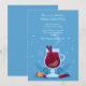 Invitación festiva de fiesta hecha con fondo azul, con copos de nieve blancos y sidra caliente festiva, en el fondo. El texto en blanco es totalmente personalizable para satisfacer las necesidades de su fiesta. Gran idea fiesta para una noche fría.
