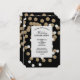 invitaciones de fiesta de vacaciones de confeti negro y dorado elegantes y modernas, favores de fiesta de año nuevo y decoraciones de fiesta negras y doradas de moda.
