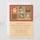 Invite a sus invitados con estilo con esta invitación a la fiesta de sellos de Navidades retro. Con estampillas de inspiración vintage de Santa, hombres de nieve, tazas de cacao e íconos festivos, este diseño nostálgico marca el tono perfecto para fiestas de vacaciones, intercambios de galletas o reuniones familiares. Personalice con los detalles de su fiesta la invitación de un Navidad único.