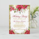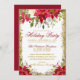 Invitación Fiesta de vacaciones Red Gold Purpurina Poinsettia