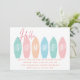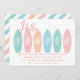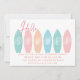 Hurra, el verano ha llegado. La escuela está cerrada por verano. Celebre el último día de escuela con esta linda invitación con tablas de surf pastel. Termina el año escolar con una divertida fiesta en la piscina con todos tus amigos