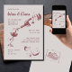 Invite a sus invitados a una fiesta de vino y queso con nuestras invitaciones de fiesta rústicas y elegantes, con una ilustración de una copa de vino siendo servida y cuñas de queso. Agregue los detalles de su evento utilizando los campos de plantilla proporcionados y personalice esta invitación para cualquier ocasión, desde cumpleaños hasta cenas de ensayo y fiestas de inauguración.