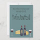 Esta invitación a la fiesta del vino y el queso, tiene un fondo verde azulado de color con imágenes de botellas de vino, queso, vasos medio rellenos...¡Todo listo para poner el ánimo para su fiesta! También hay una buena cita sobre el vino en el frente. Siéntase libre de personalizar de la parte trasera de la invitación con todos los detalles de su noche especial. Puede cambiar el estilo de fuente a otra cosa si lo desea, y el color de la parte posterior puede ser alterado con la pestaña de color si desea algo diferente.