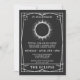 Una elegante invitación para el eclipse solar total del 8 de abril de 2024. En un diseño a la moda de la tarjeta tarot con la tarjeta llamada "El eclipse" y la fecha en números romanos. Con un gráfico místico del eclipse sobre un suave color de fondo negro. Edite las plantillas de texto para la invitación de su propio personalizado a la fiesta de visualización. Disponible como invitaciones impresas o como descarga instantánea para enviar por teléfono.