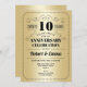 Invitación para la fiesta del 10º aniversario de bodas. Tarjeta de invitación dorada y negra. Perfecta para una celebración elegante. Puede ser personalizada para cualquier año.