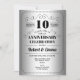 Invitación a la fiesta del 10º aniversario de boda. Tarjeta de invitación plateada y negra. Perfecta para una celebración elegante. Se puede personalizar para cualquier año.