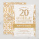 Invitación a la fiesta del 20º aniversario de boda en blanco y dorado.