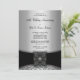 Elegantes invitaciones modernas negras para la fiesta del 25 aniversario de boda de plata damasco.
