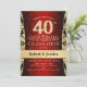 Invitación a la fiesta del 40 Aniversario de Boda en rojo rubí, negro y dorado.