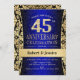 Invitación a la fiesta del 45º aniversario de bodas en azul zafiro, negro y dorado.