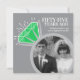 Invite a sus amigos y familiares a una fiesta especial de aniversario de bodas de esmeralda número 55 o celebración de cena con estas invitaciones de anillo de eternidad gráfico con destellos grises, verdes esmeralda y blancos, y dos fotos de entonces y ahora. Personalizadas con sus propias fotos del día de la boda de su pareja y una foto actual en el reverso, luego agregue sus propias palabras de celebración, fecha de la fiesta y lugar. Otros artículos coincidentes están disponibles. Arte y diseño gráfico del anillo original por www.mylittleeden.com en Zazzle.