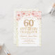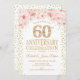 Invitación a la Fiesta del 60 Aniversario Boda. Diseño floral en falso oro purpurina y blanco. Presenta un diseño elegante de tipo de letra de guión, confetti y rosas rosas de color rosa. Mándame un mensaje si necesitas un año personalizado. ¡Perfecto para una celebración elegante!