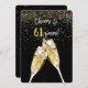 Brindis de champán sobre negro con confeti cayendo para la invitación de la fiesta del 61 aniversario de bodas.