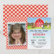 Invitación de cumpleaños de granja con foto de personalizado. Jardín de animales de granja. Pollo de cerdo bovino. Niño o Chica Bday. Primer cumpleaños. 12º 3º 4o 6o 7o 8o 9o 11o 12o 13o 14o 15o, Cualquier edad. Fondo marcado rojo y blanco. Digital Imprimible.