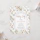 Invitación de cumpleaños con flores silvestres en color boho y hojas verdes y más, con un elegante traje de fondo para los cumpleaños de los chicas de cualquier edad