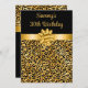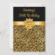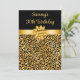 Esta elegante y glamorosa invitación a la fiesta de cumpleaños incluye un arco dorado y un listón con puntos de impresión de leopardo negro y oro. El texto combina el guión manuscrito y las fuentes sans serif modernas para un aspecto elegante y sofisticado.